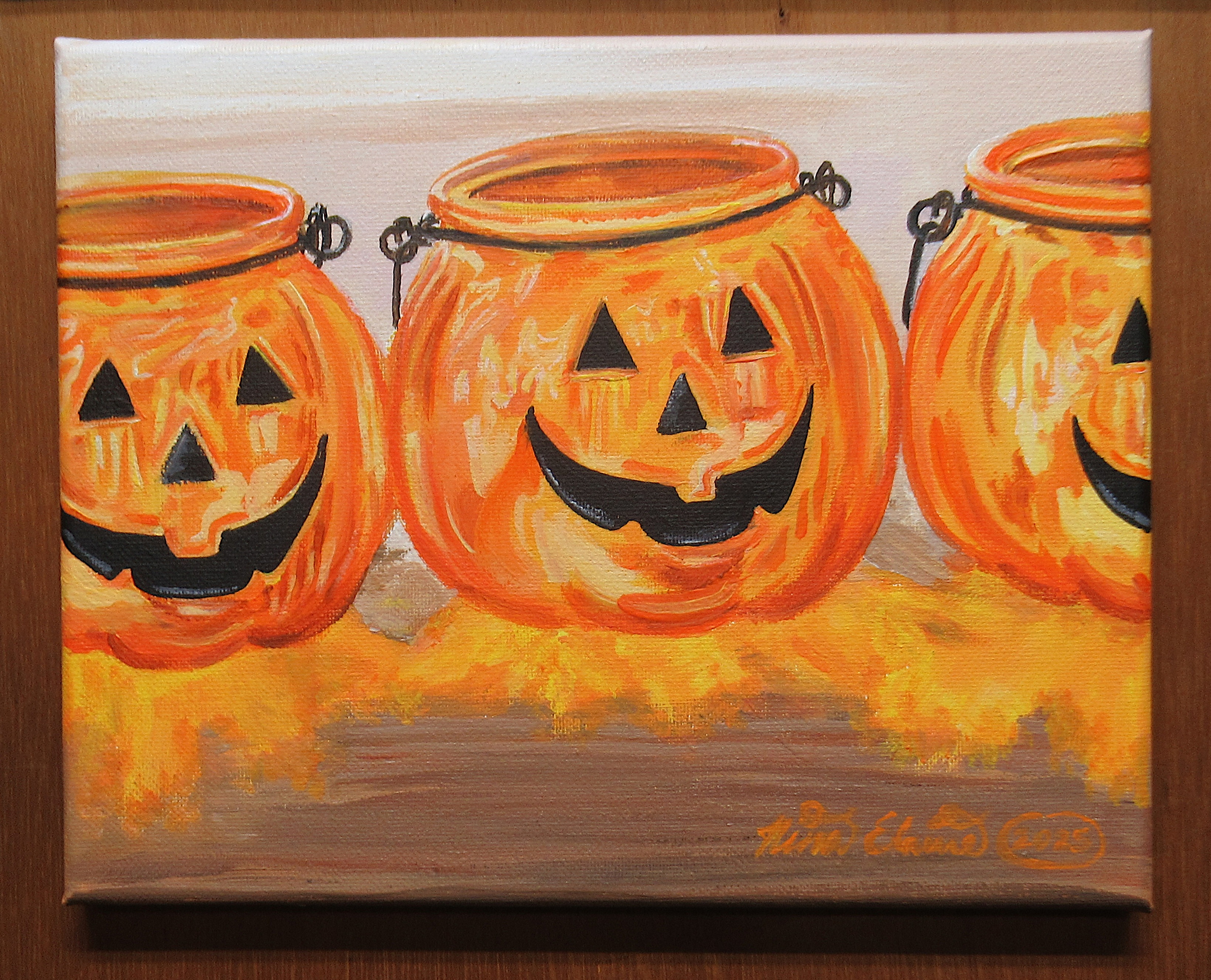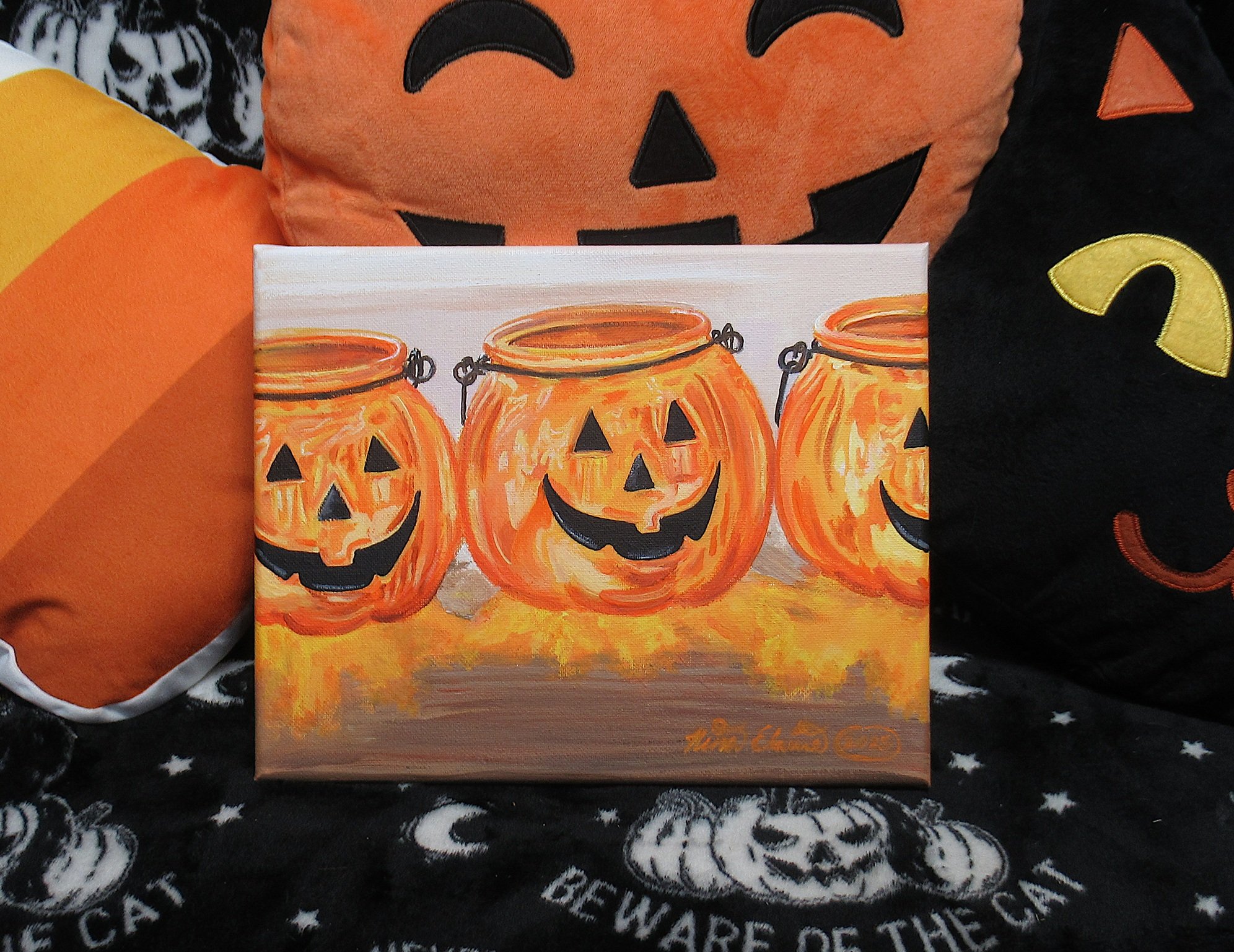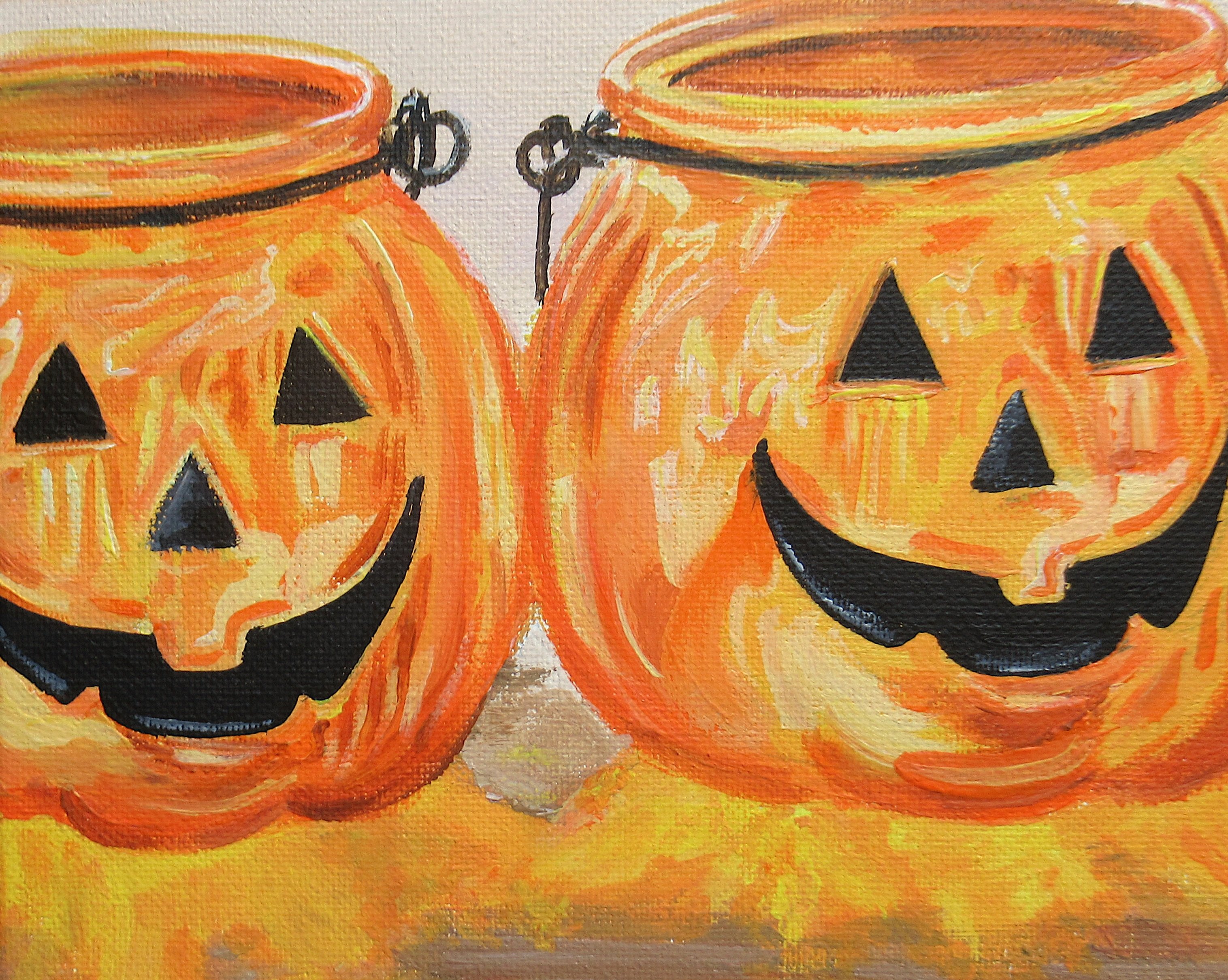 Jack-o'-lantern Jars, Original acrylic painting by N.E.Thompson, Artwork size 8x10 inches