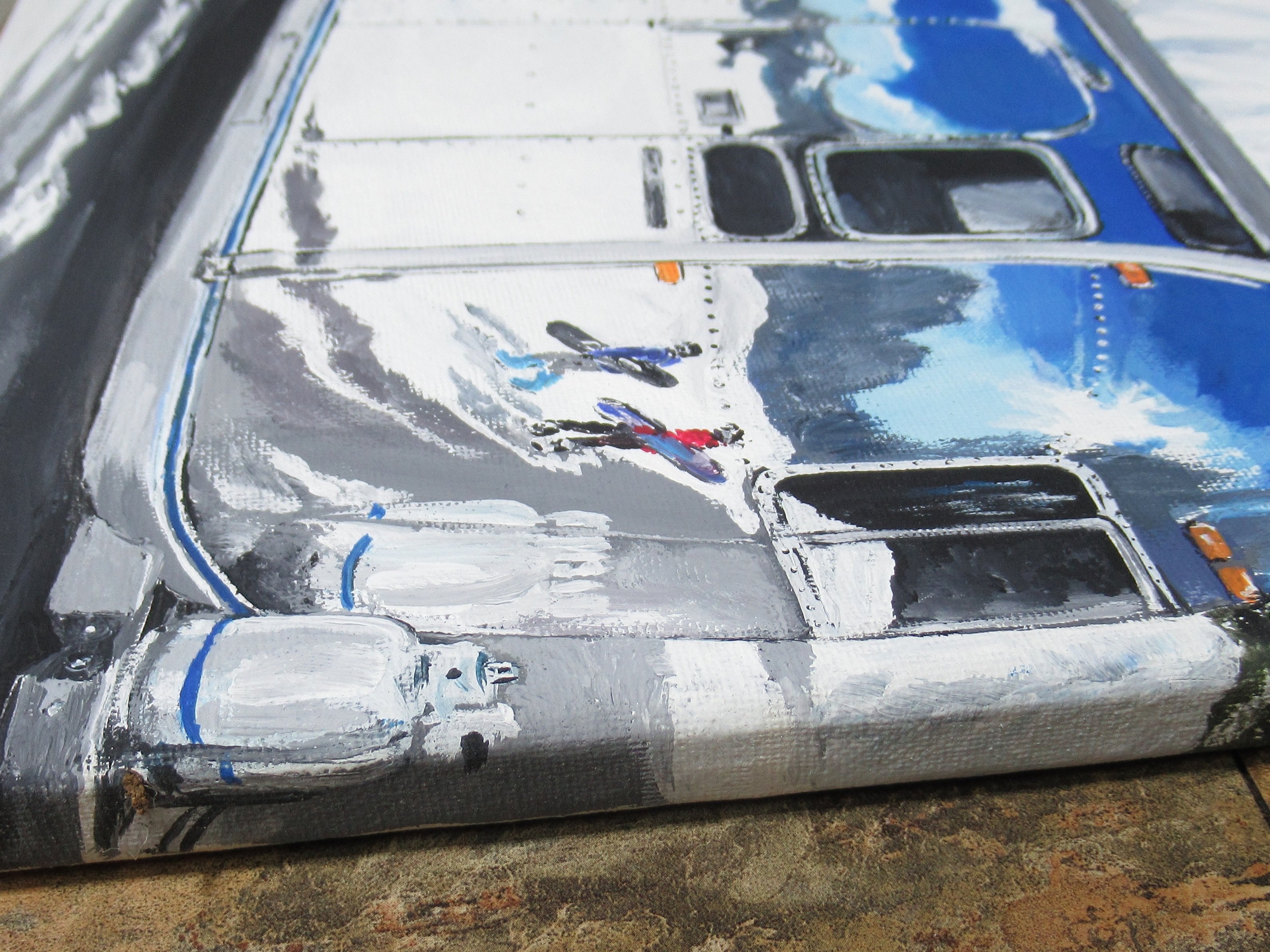Mountain Camper is an original one of a kind piece. It was created with acrylic paint on stretched canvas, size 12x16 inches with a half inch depth.