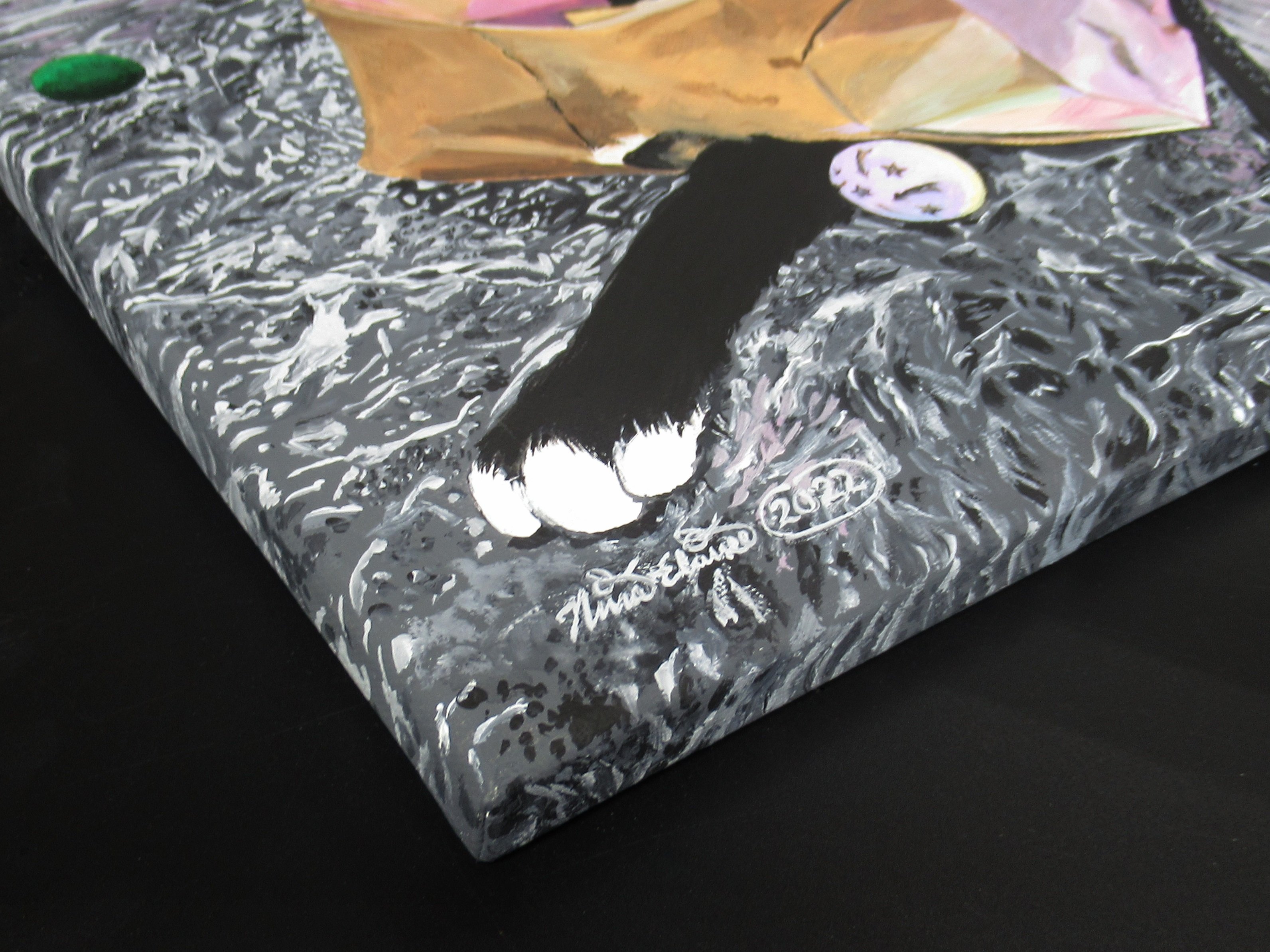 "Little Bag Lady" An Original Acrylic Painting By N.E.Thompson, Black Cat Realism Painting, Size 11x14 Inches