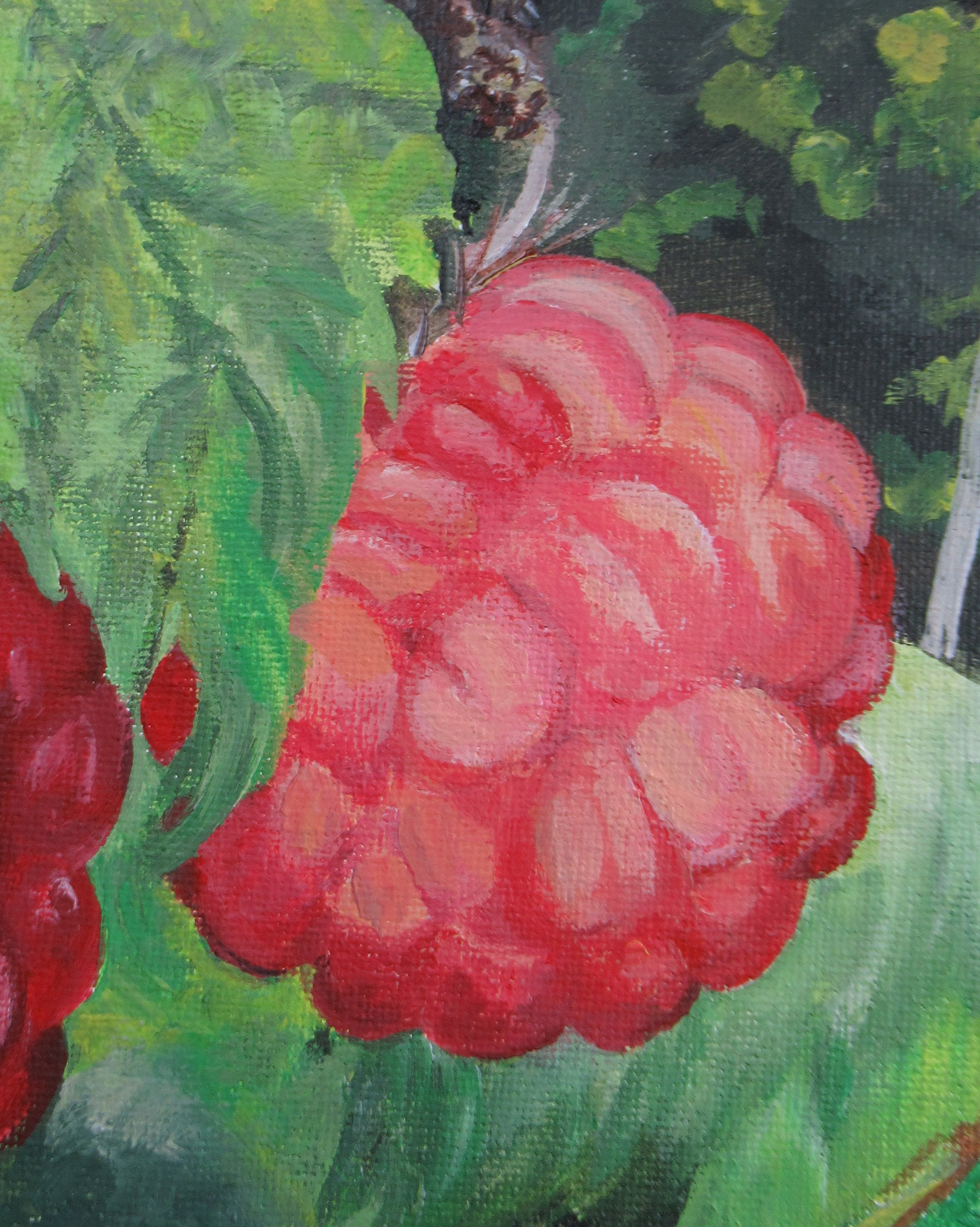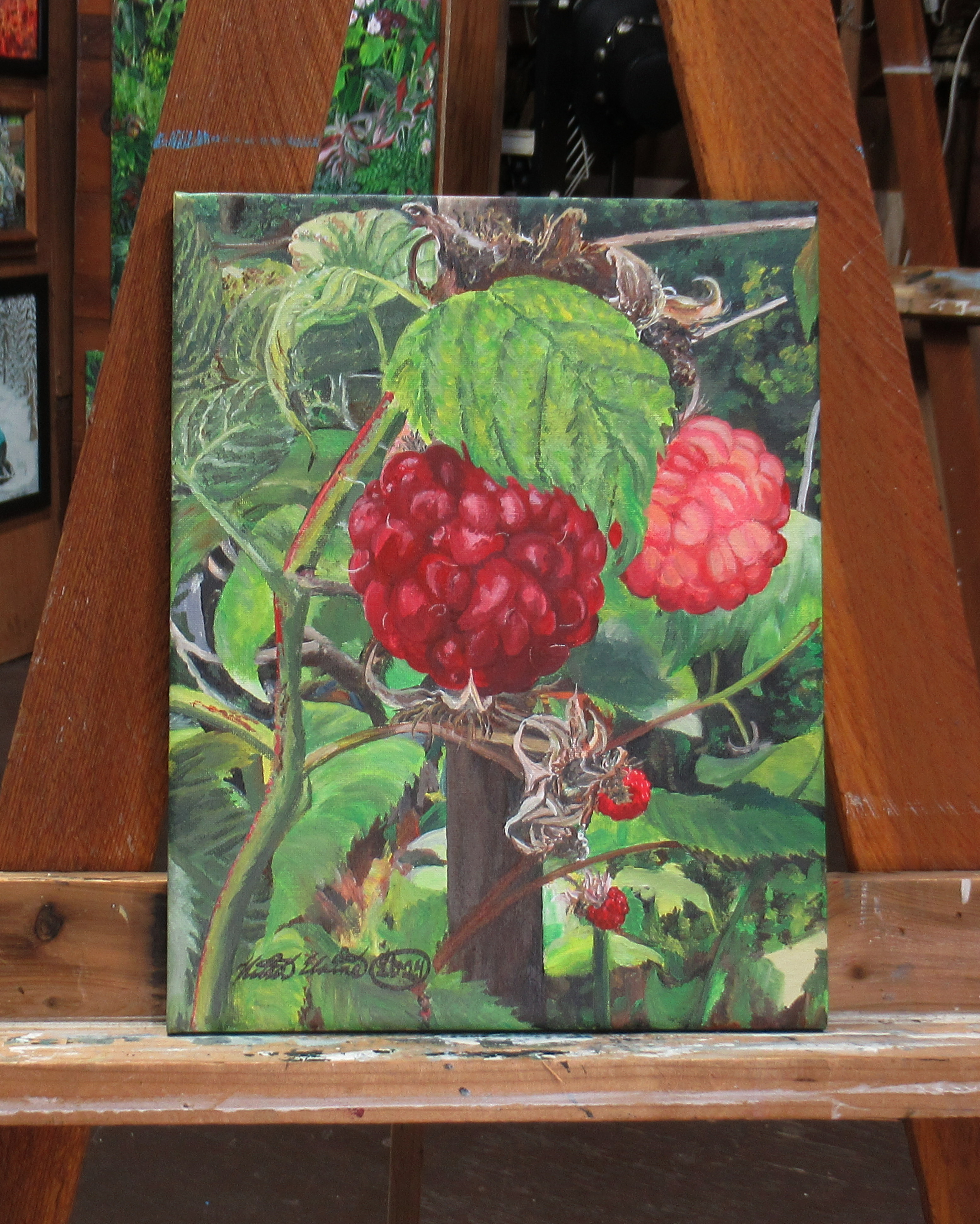 "Raspberries" Acrylic painting on 11 x 14 inch stretched canvas, Original artwork by N.E.Thompson
