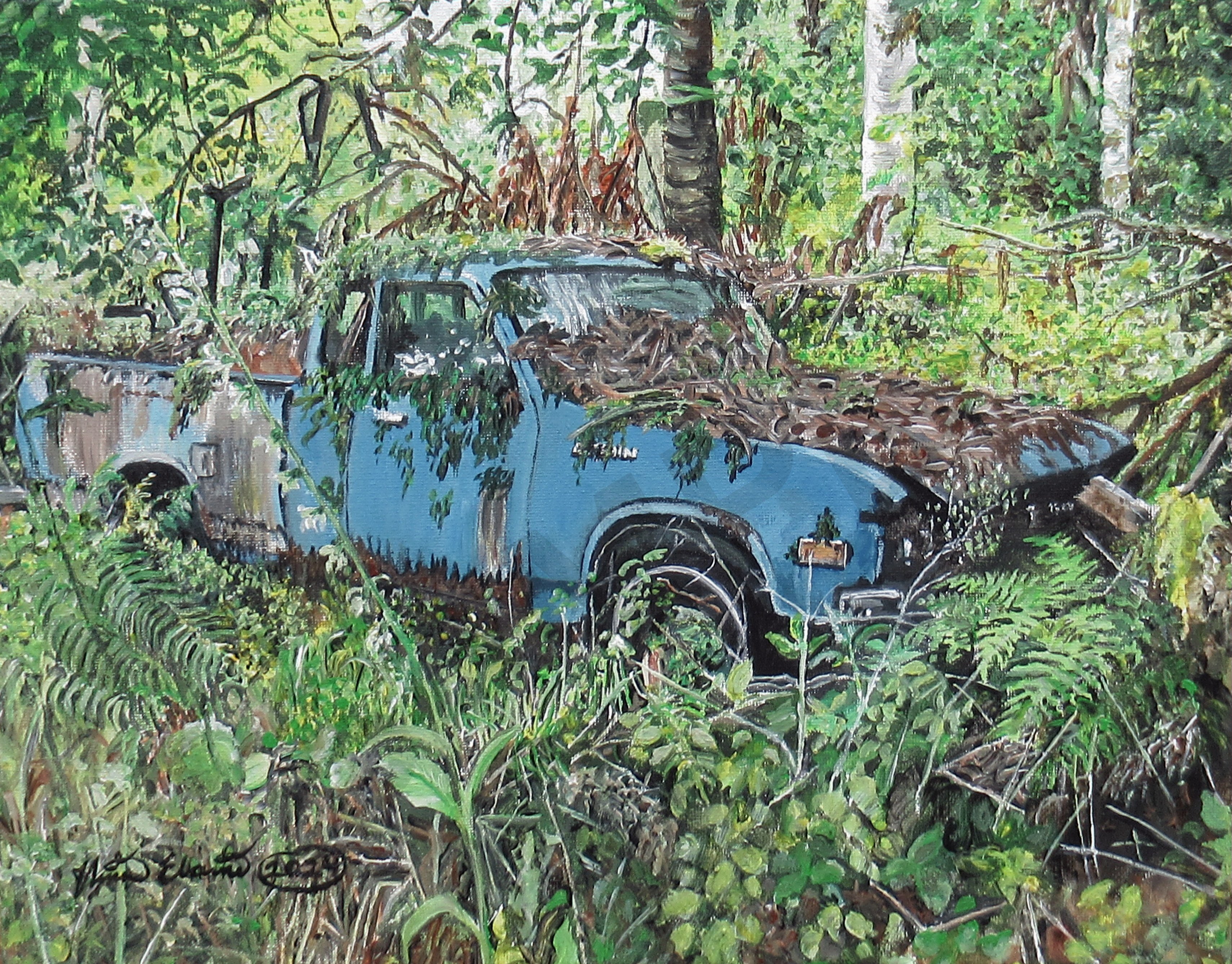 The artwork, by N.E.Thompson, features a classic truck recessing into the surrounding foliage as nature reclaims it.