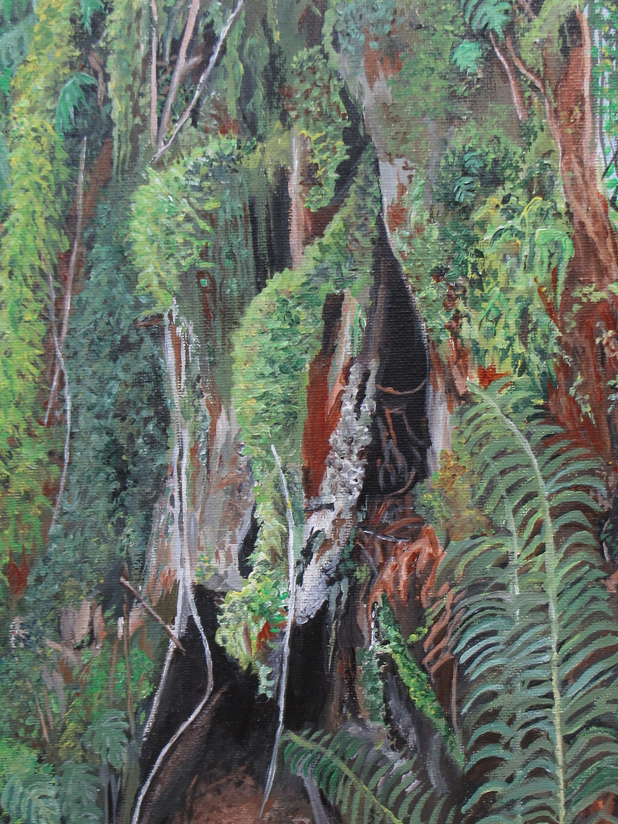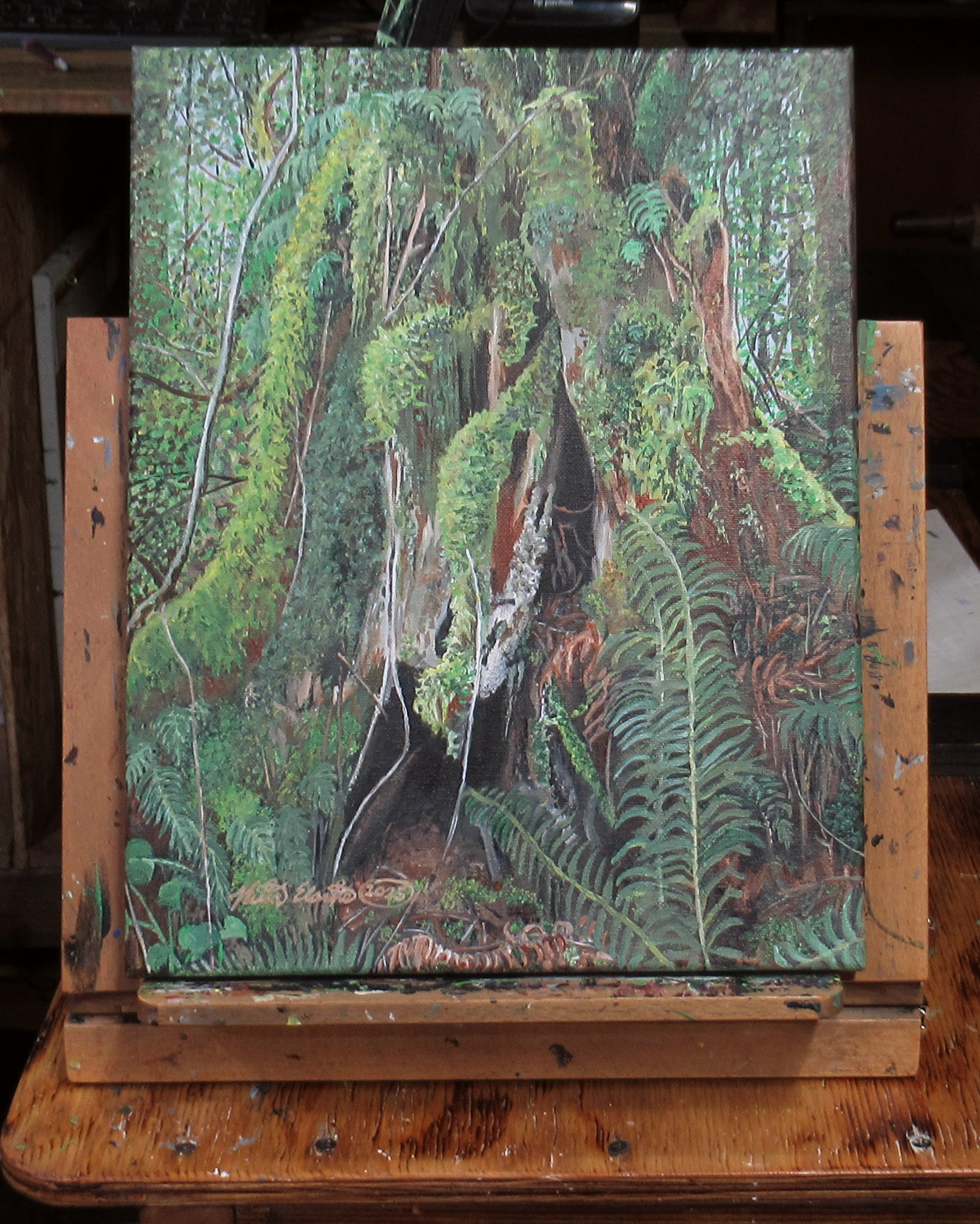 "Hollowed Tree Stump" Original acrylic painting by N.E.Thompson, artwork size 11x14 inches