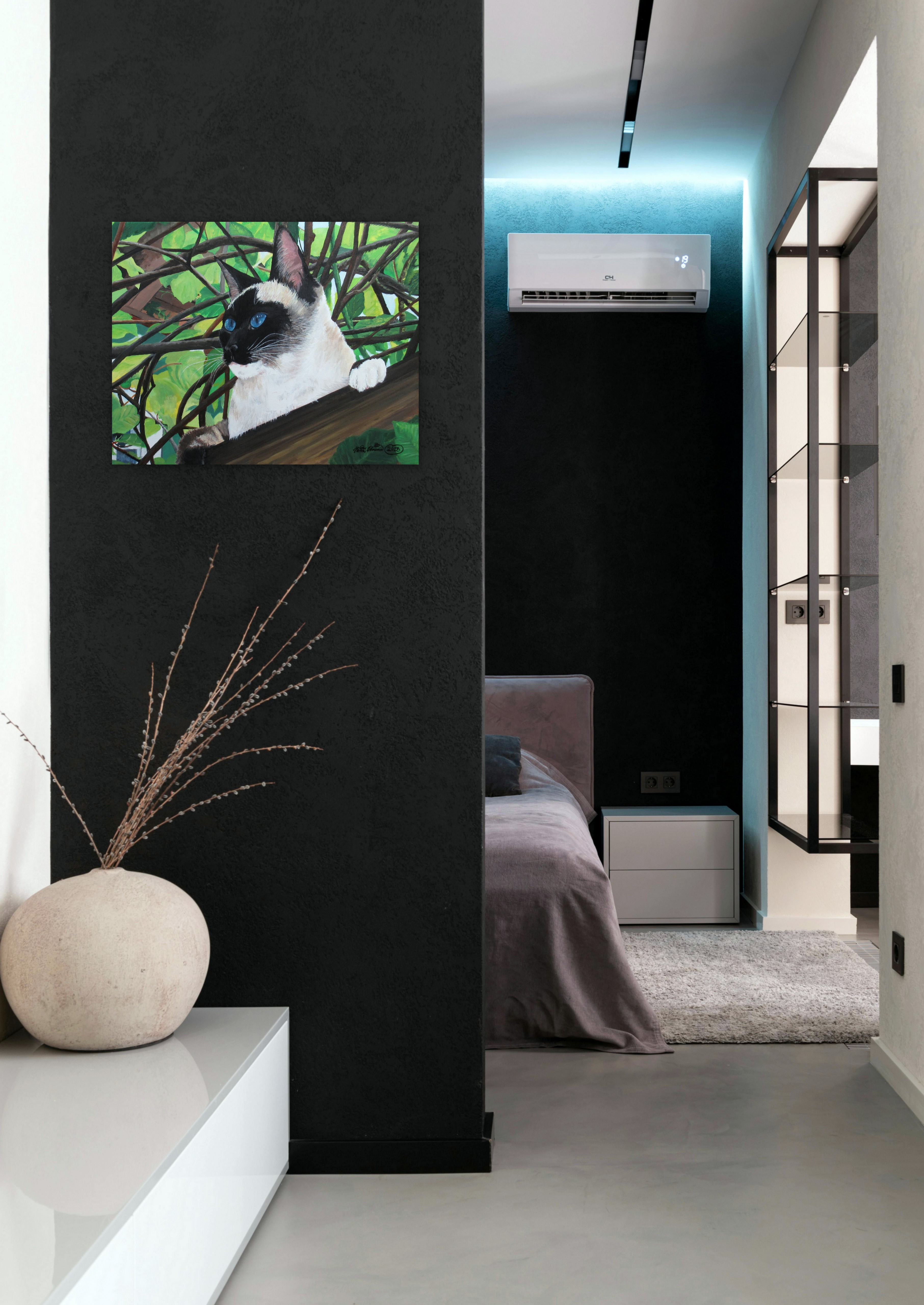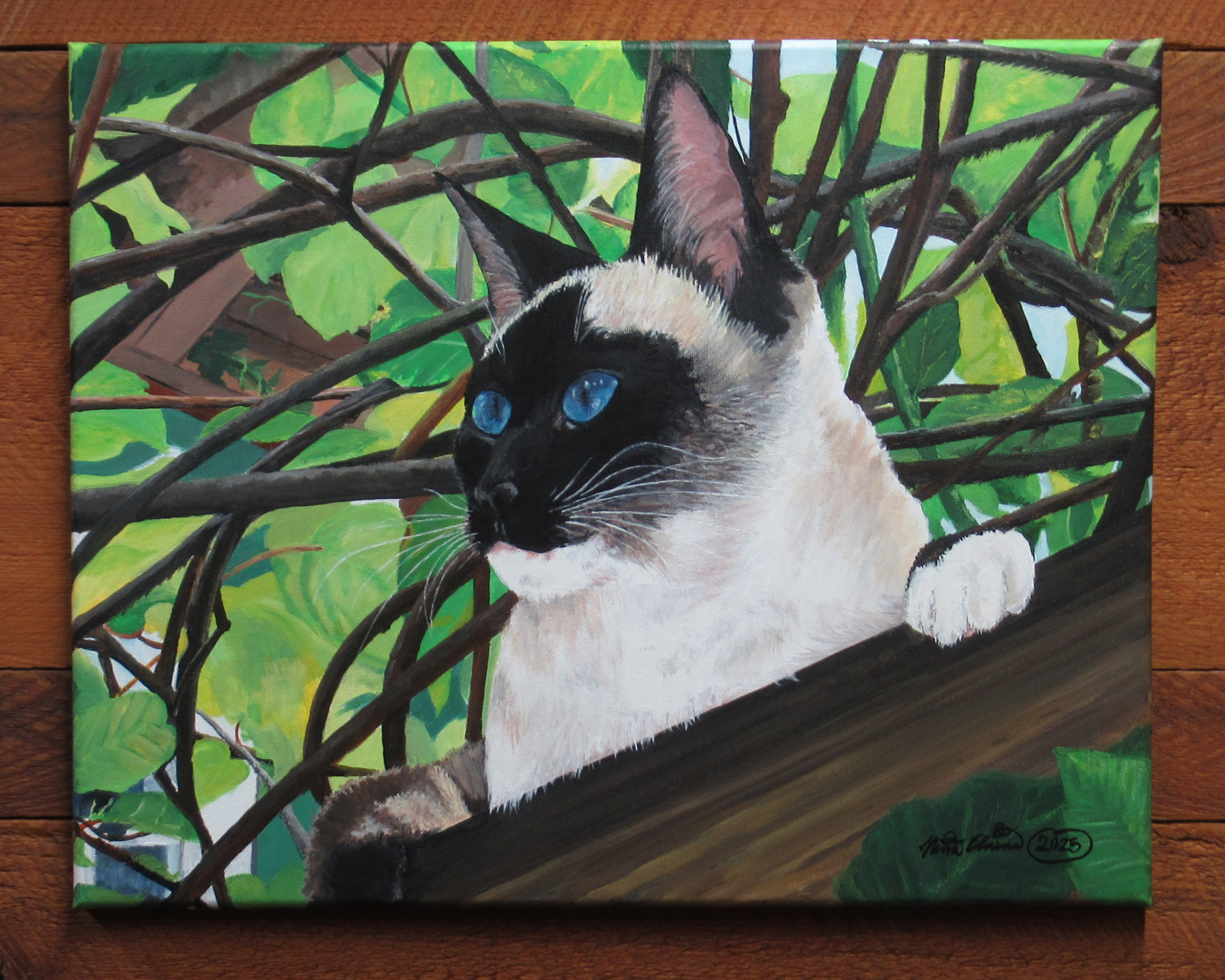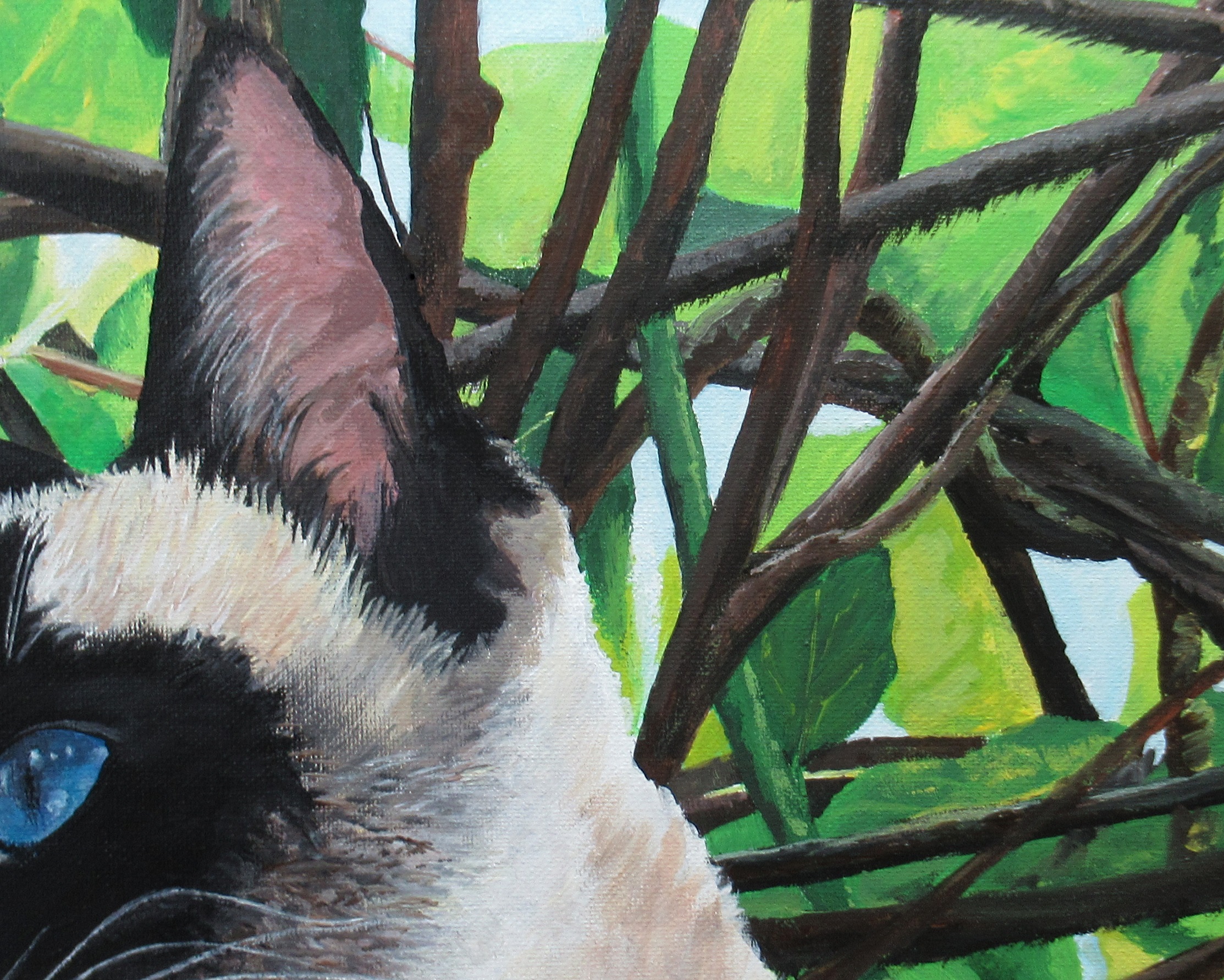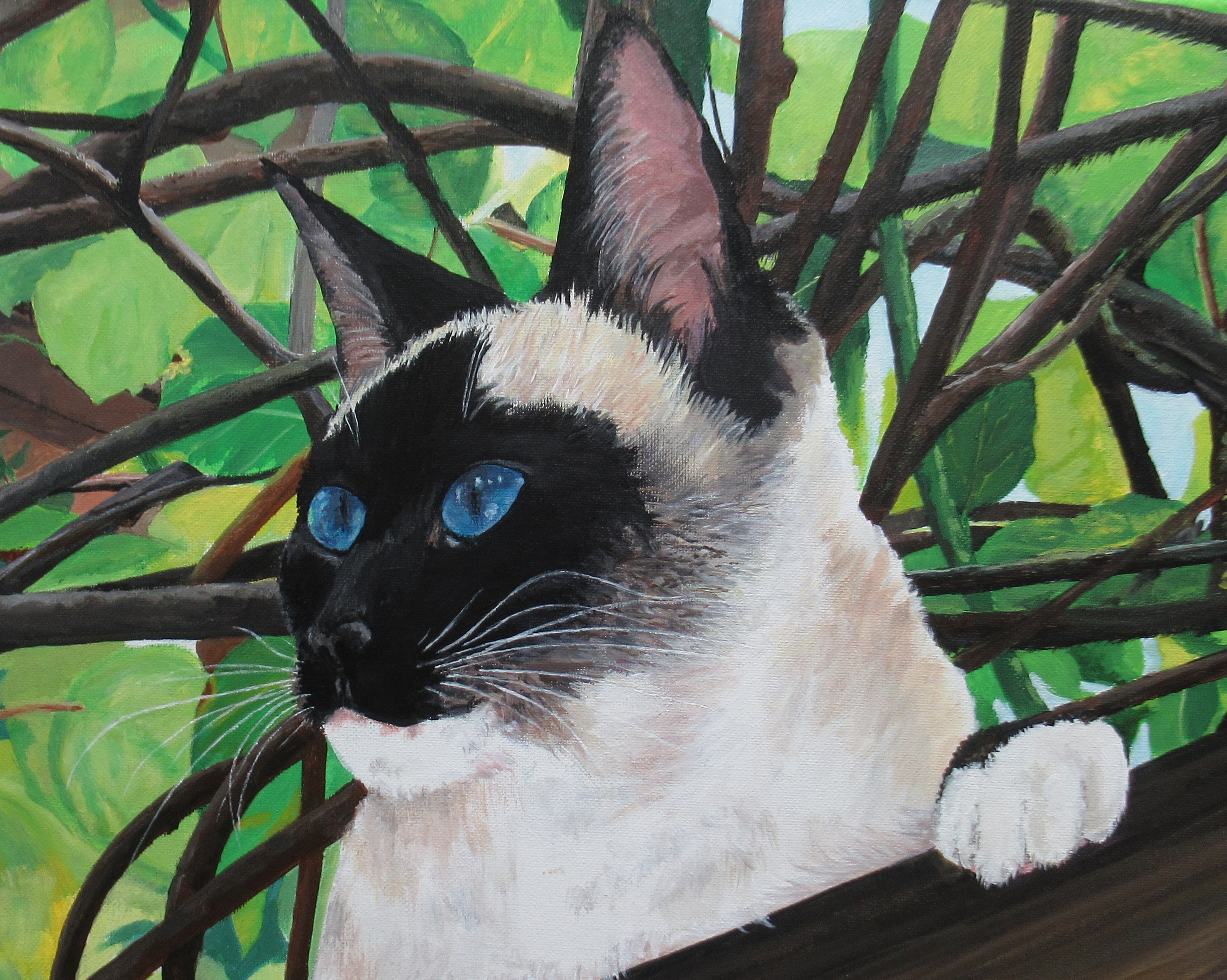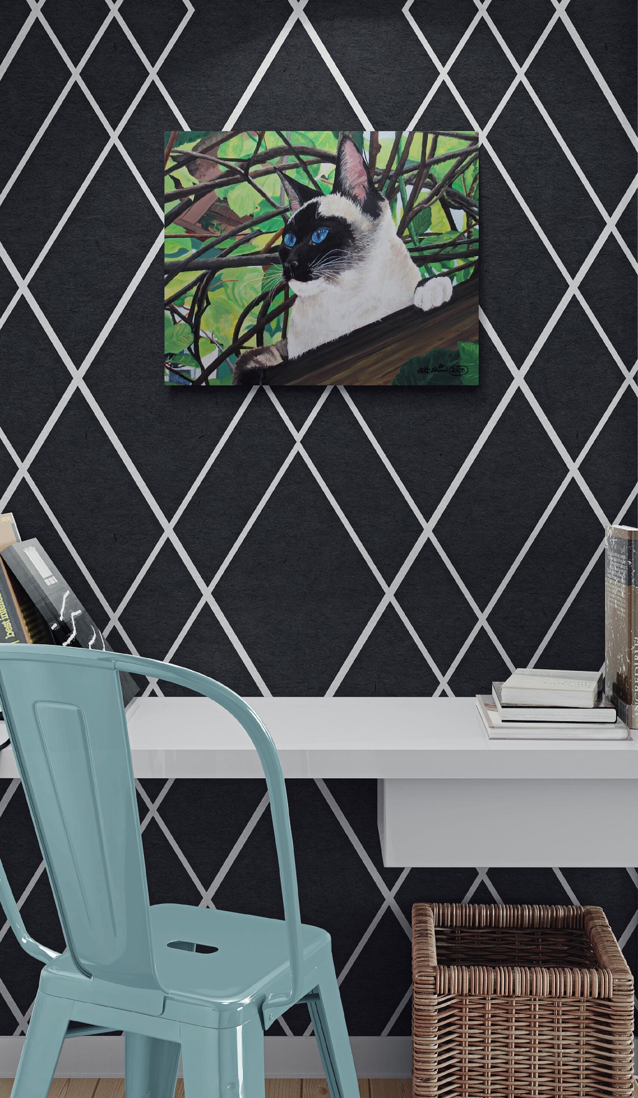 "Bird Watcher," Siamese cat art, Original Acrylic Painting By N.E.Thompson, 16x20 Inches