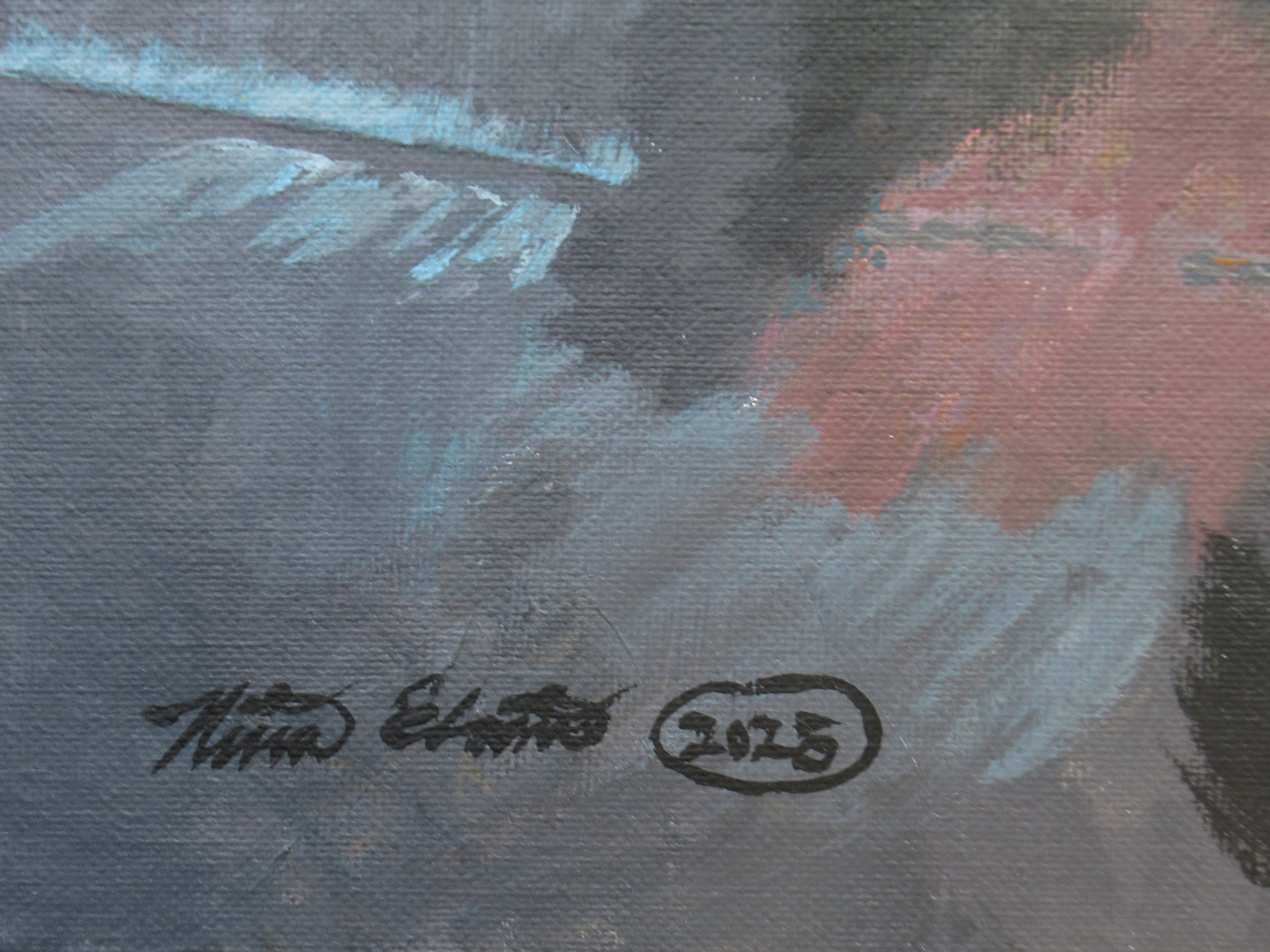 The painting has been signed by the artist and comes fully framed and ready to hang. The artwork measures 20x26 inches inside the frame.