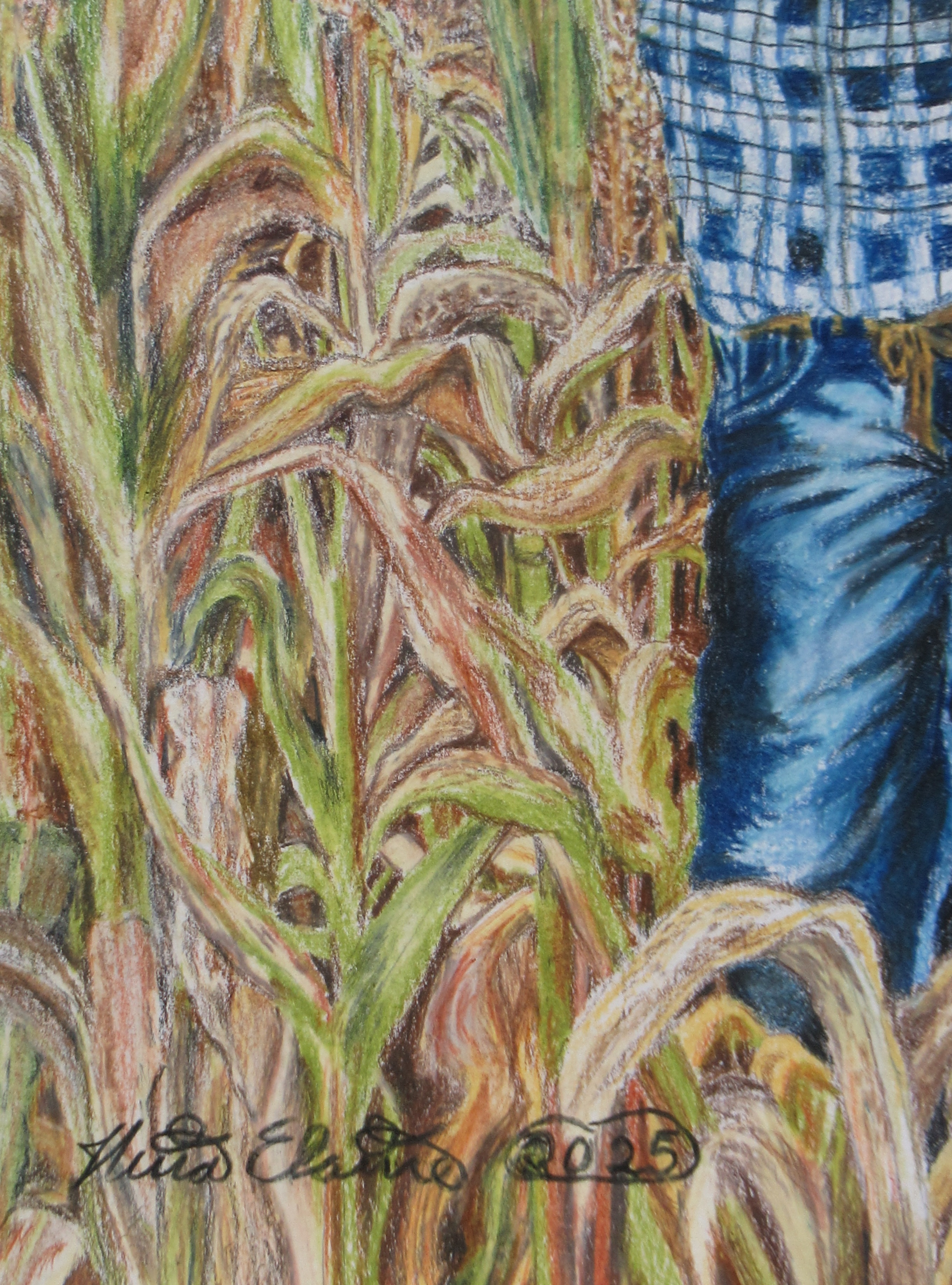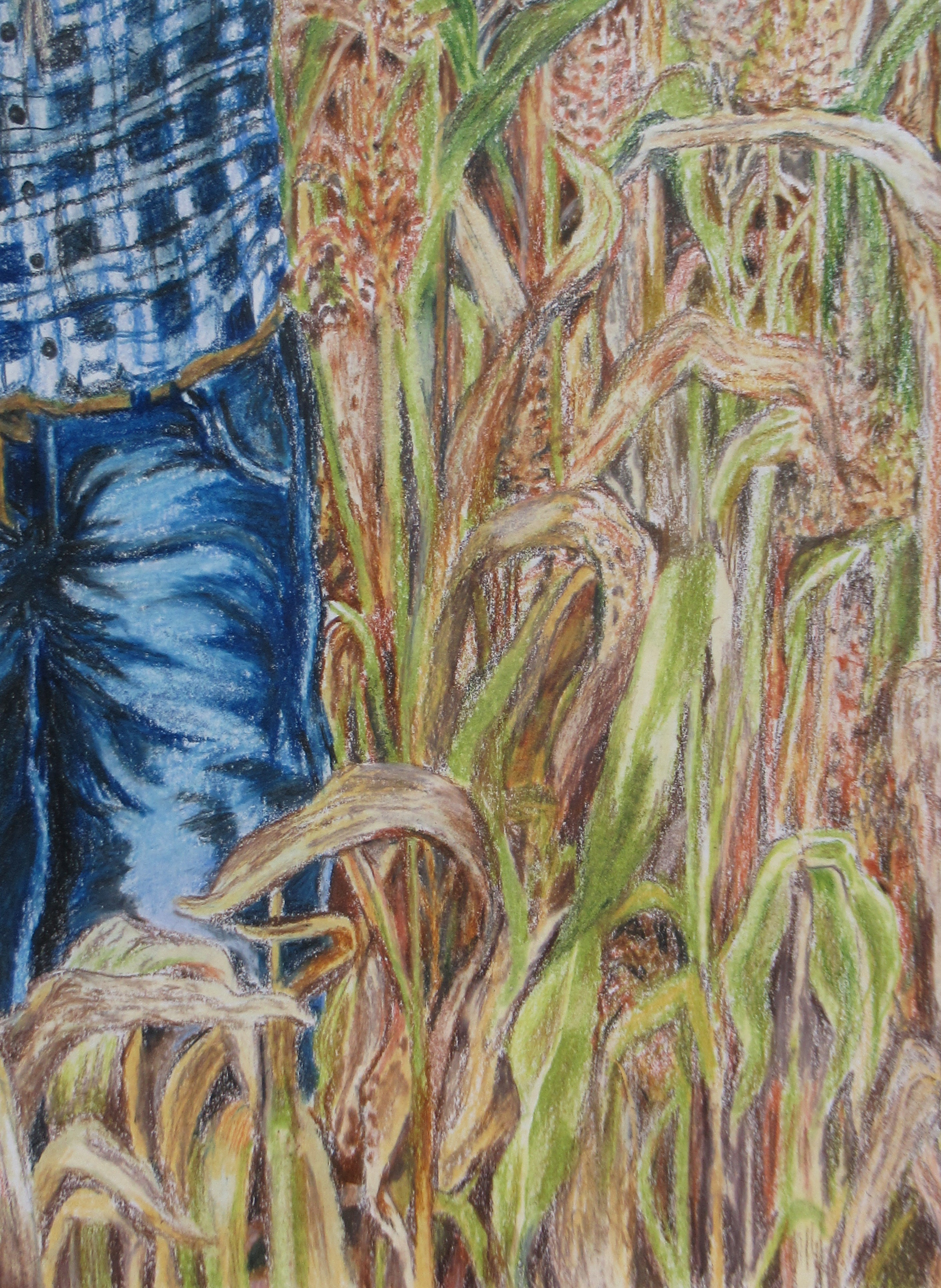 Inspired by the beauty of fall and all the fun things this season of harvest has to offer, this piece of art features a scarecrow guarding his cornfield with a friendly farm cat perched upon his shoulders.