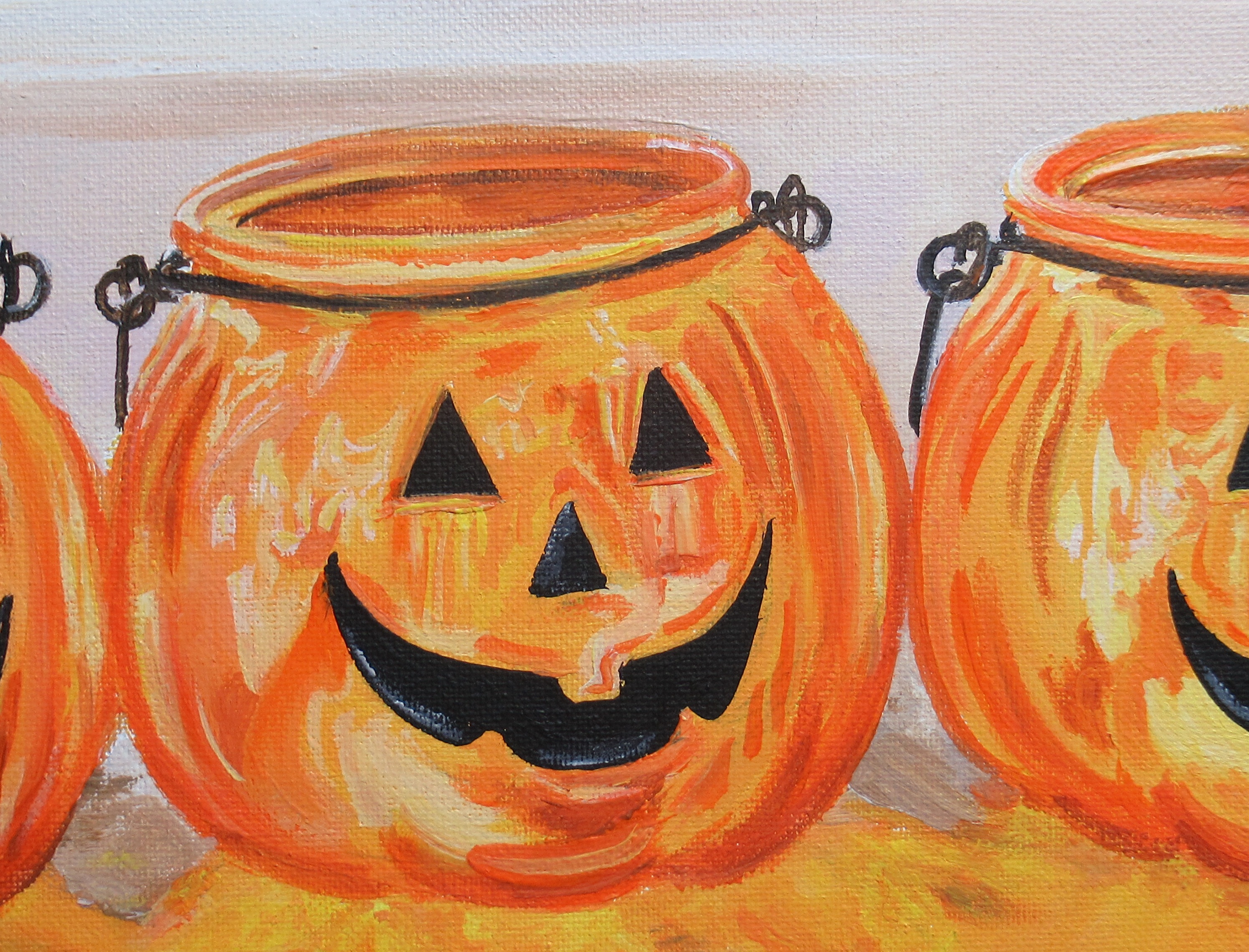 Jack-o'-lantern Jars, Original acrylic painting by N.E.Thompson, Artwork size 8x10 inches